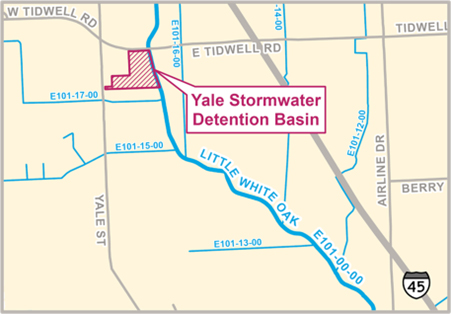 That’s exactly what the Yale Stormwater Detention Basin project is designed to do. It will improve stormwater management and help support long-term flood mitigation efforts along Little White Oak Bayou.